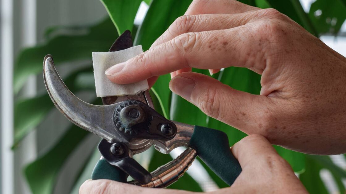 For regular maintenance and sanitization, spray a diluted bleach solution on the tools and allow them to air dry. You want to mix about nine parts water to one part bleach, so 9 cups of water to 1 cup of bleach, for example.